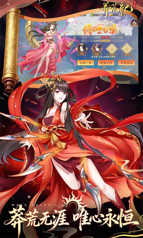 修真小说扛鼎之作《莽荒纪》正版改编,热血卡牌、创新策略、轻松养成,和三界修士一起征战莽荒世界,主宰混沌宇宙。众多人气角色,【斜月七星洞】【无间魔窟】【大夏王朝】【散修联盟】四大阵营,近百位原著修士英雄,各具特色,任你招揽。轻松收集养成,忙时挂机,闲时上线,升级打宝零负担;队伍一键换将,养成资源无损继承,拒绝重复培养。