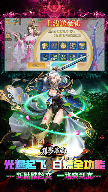 2、所有功能全白嫖,挂机得一切,打怪爆爆爆爆爆爆!